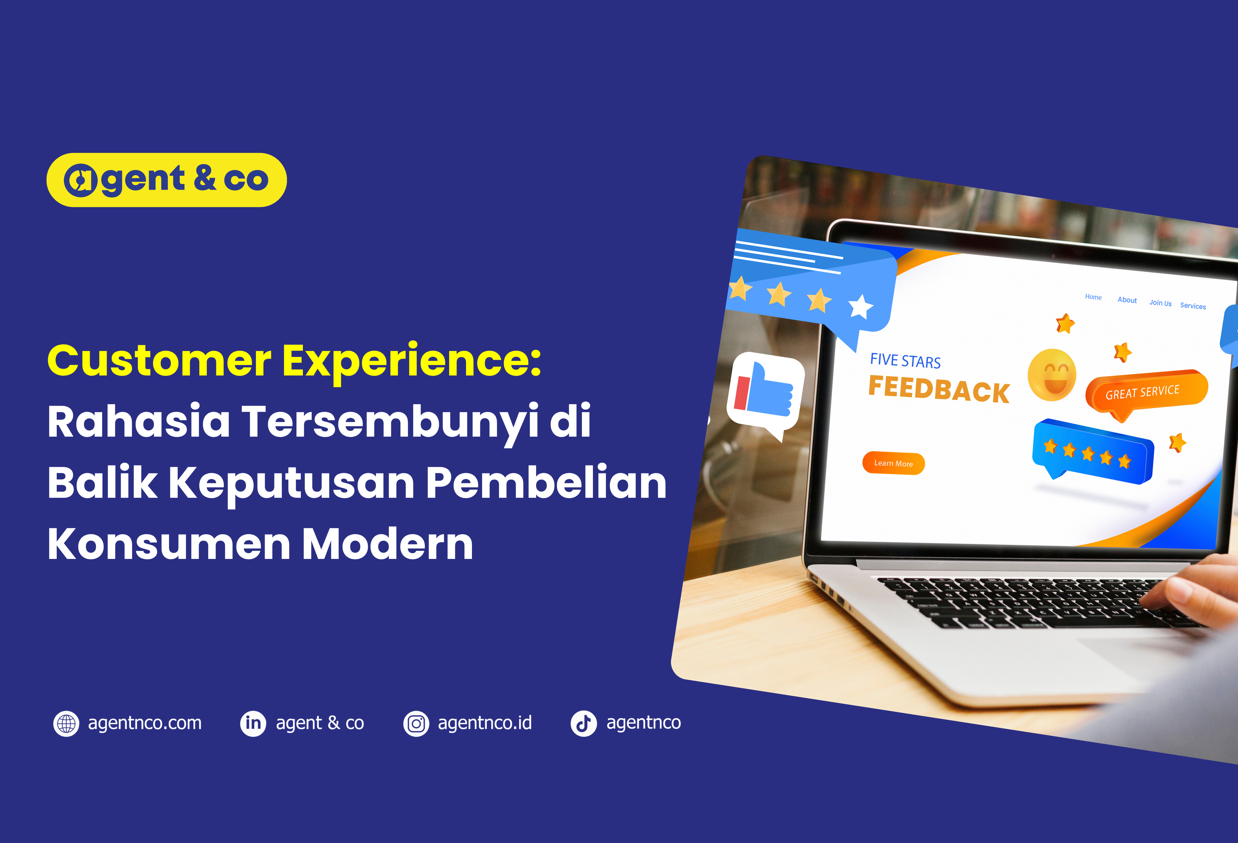 Agent&Co hadir sebagai mitra strategis untuk membantu Anda menciptakan standar layanan yang tidak hanya memuaskan, tapi juga mengesankan. Dengan dukungan tim yang berpengalaman, kami memastikan setiap titik sentuh (touchpoint) pelanggan Anda ditangani dengan kualitas prima.