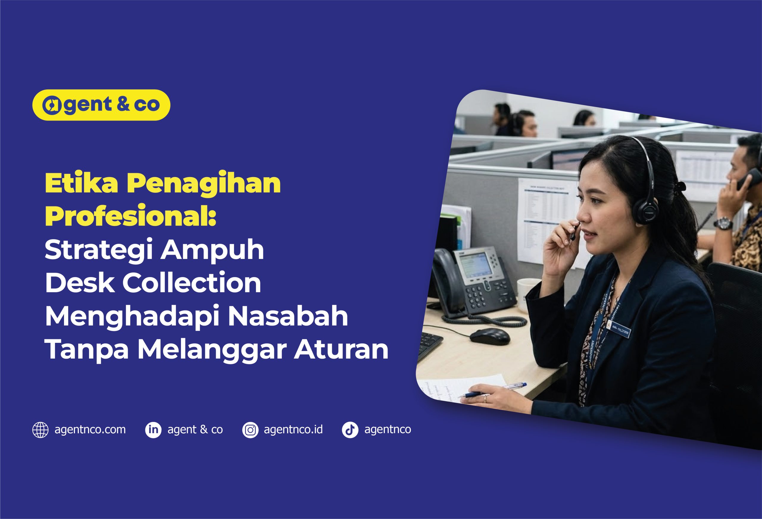 Agentnco hadir sebagai solusi partner strategis Anda. Kami menawarkan layanan penagihan (collection service) profesional yang didukung oleh tenaga ahli terlatih dan sistem yang terintegrasi. Dengan Agentnco, Anda bisa memastikan proses penagihan berjalan efektif, legal, dan tetap menjaga hubungan baik dengan pelanggan. Serahkan urusan penagihan kepada kami, dan fokuslah pada pertumbuhan bisnis utama Anda. Hubungi kami melalui WhatsApp +62 881-5876-302 |📧 info@gad.co.id | Follow Social Media Kami : Instagram: agentnco.id Linkedin agent & co, TikTok Agentnco